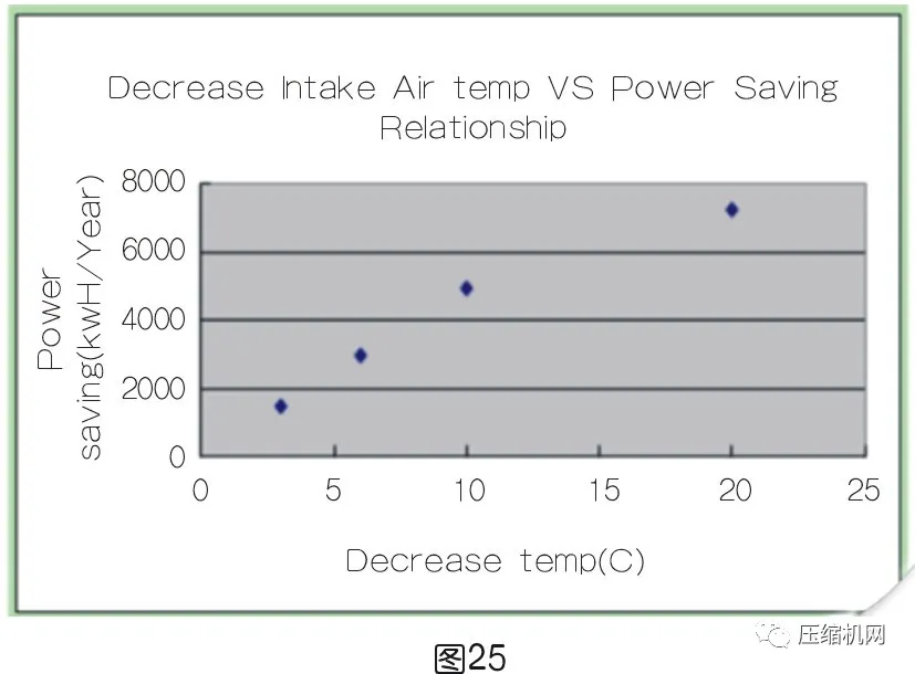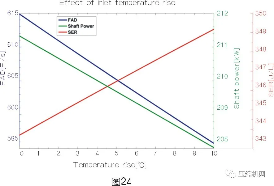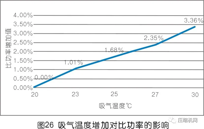 空壓機(jī)進(jìn)氣溫度越高,其耗功也越高;(見圖23)