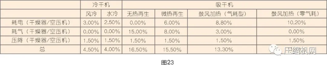干燥機(jī)的選型原則:能用冷干機(jī)就不用吸干機(jī),再生方式能用電就不用氣,能用熱就不用電。(見圖22)