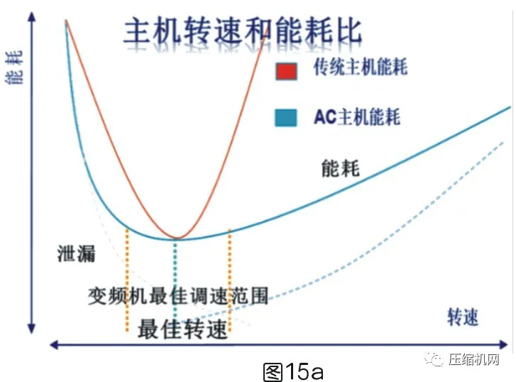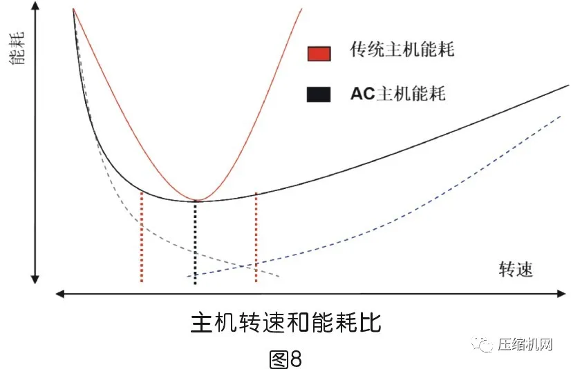③所以,當(dāng)空壓機(jī)工作在最佳主機(jī)轉(zhuǎn)數(shù)時(shí),最節(jié)能(曲線最低點(diǎn))。