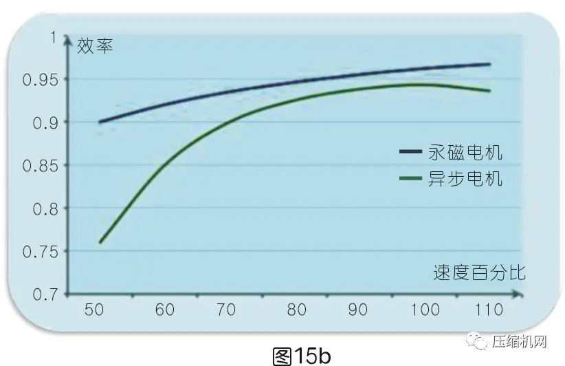 前面講了,無論是主機(jī)軸功率還是電機(jī)效率,都有其額定轉(zhuǎn)數(shù)(最佳轉(zhuǎn)數(shù)),偏離了最佳轉(zhuǎn)數(shù),其效率都會(huì)降低。(見圖15a、15b)