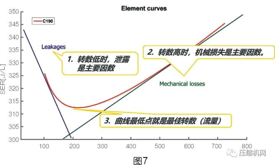 ①當(dāng)轉(zhuǎn)數(shù)低時(shí),泄露會(huì)影響到比功率值上升(左邊曲線);