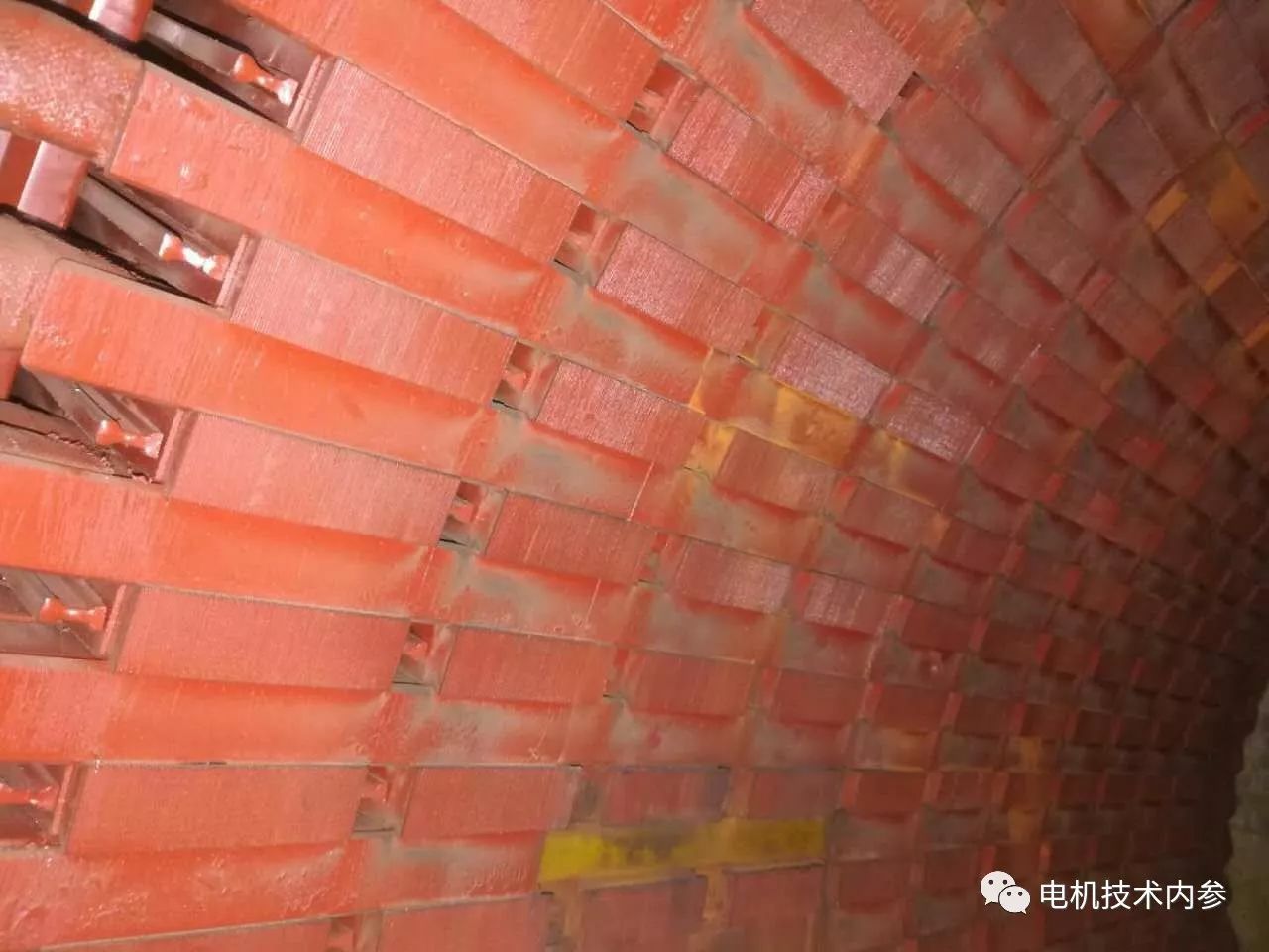 文中提到,公司開始組裝磁槽楔時,有員工不愿意將磁槽楔貼牢,擔心以后修電機時楔不下來,給修帶來麻煩。由于磁槽楔沒有嚴格按照工藝要求進行涂膠固定,電機開始安裝后不久,磁槽楔就脫落了很多。
