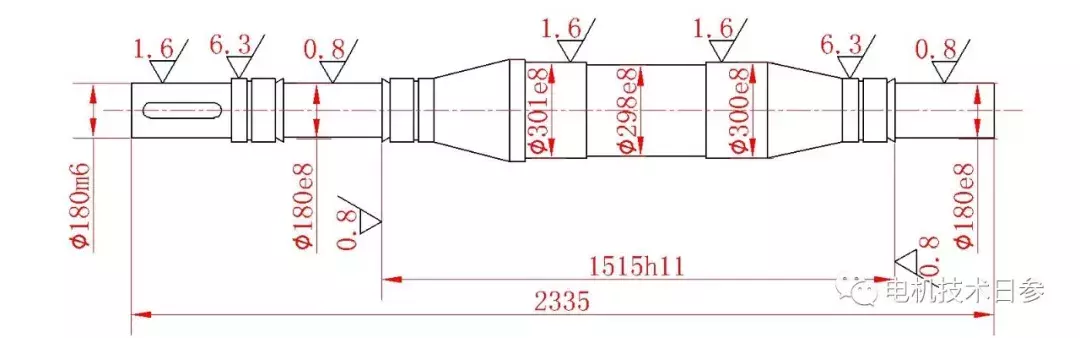 足夠的強(qiáng)度和剛度是電機(jī)軸安全可靠運(yùn)行的前提,特別是大中型電機(jī),應(yīng)根據(jù)實際工況嚴(yán)格檢查或論證。但是,除此之外,電機(jī)軸結(jié)構(gòu)的可制造性在設(shè)計電機(jī)軸時也必須認(rèn)真對待,這往往被人們所忽視,從而嚴(yán)重影響加工精度和效率。女士參考今天的話題討論,談?wù)勅绾未_定軸的結(jié)構(gòu)和工藝參數(shù)。