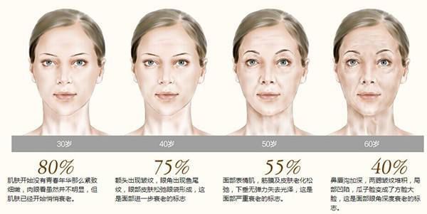 2、出現(xiàn)“三八”線,眼角下垂、法令紋、嘴角紋