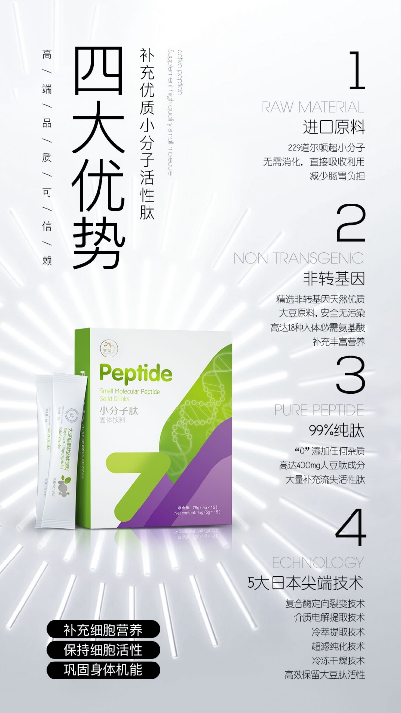 近年來經研究發現,小分子肽作為蛋白質的功能活性片段,不僅比蛋白質的營養價值高,還能提供人體生長發育所需要的營養物質,而且具有許多蛋白質所不具備的獨特的生理活性。