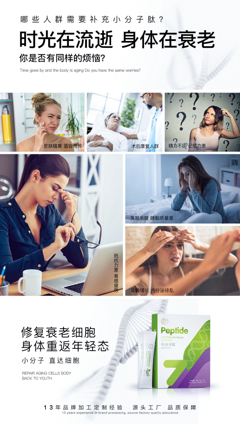 小分子肽的生物活性高,在極其微量的情況下,也能發揮其獨特的生理作用。小分子生物活性肽具有傳遞生理信息、調節生理功能的作用,維持著人體正常的生理活動。從細胞到組織器官,都可以發現小分子生物活性肽的作用。