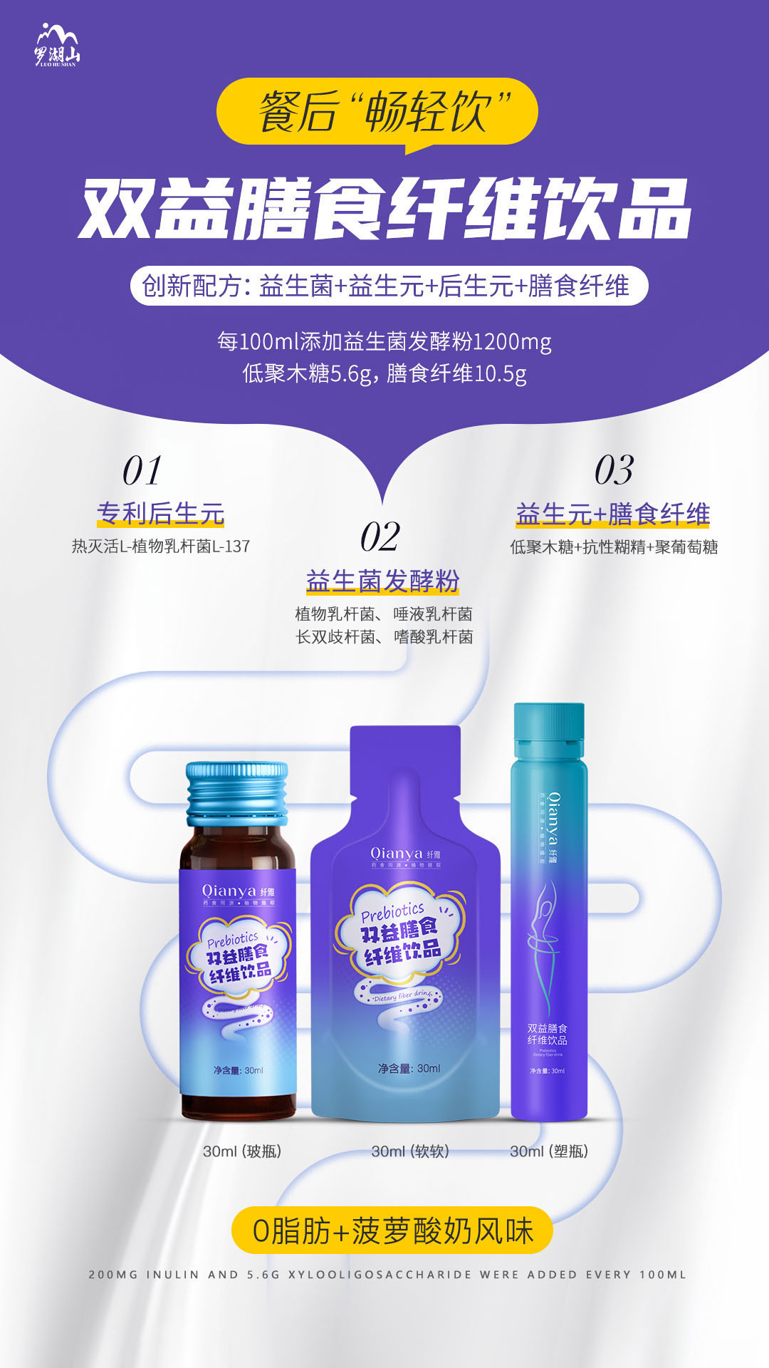 羅湖山生物特推出膳食纖維飲品,添加豐富膳食纖維的基礎上益生菌+益生元成分為你嗨吃保駕護航!!