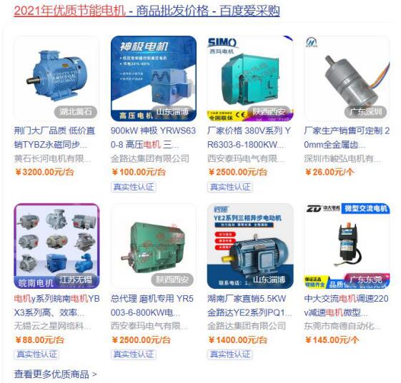 (百度愛采購搜索得出2021年優(yōu)質(zhì)節(jié)能電機(jī)價格)