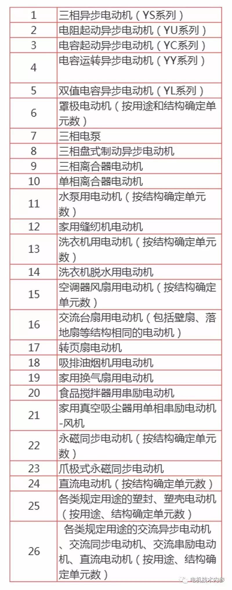 1.1KW以下未列入CCC認(rèn)證目錄:的電機(jī)產(chǎn)品清單