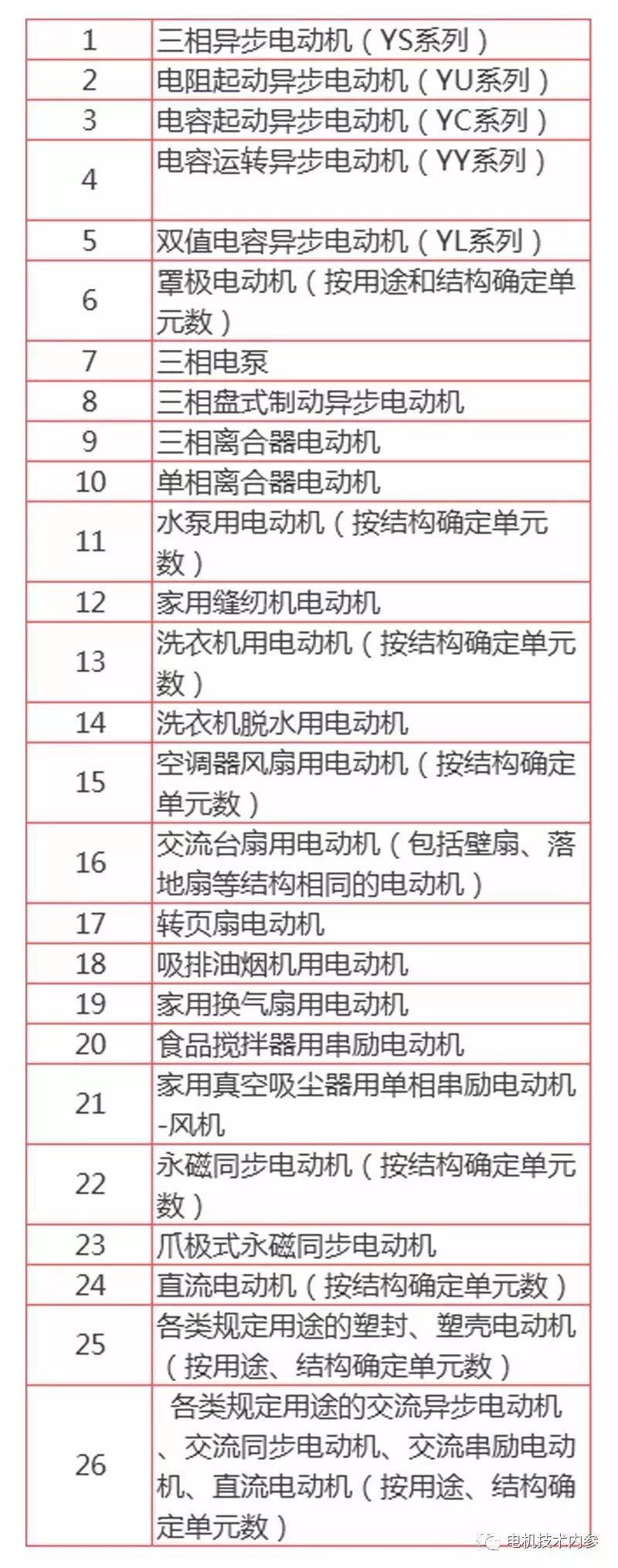 非強制性CCC認證目錄未列入CCC認證目錄: 1.1KW以下電機產品清單。