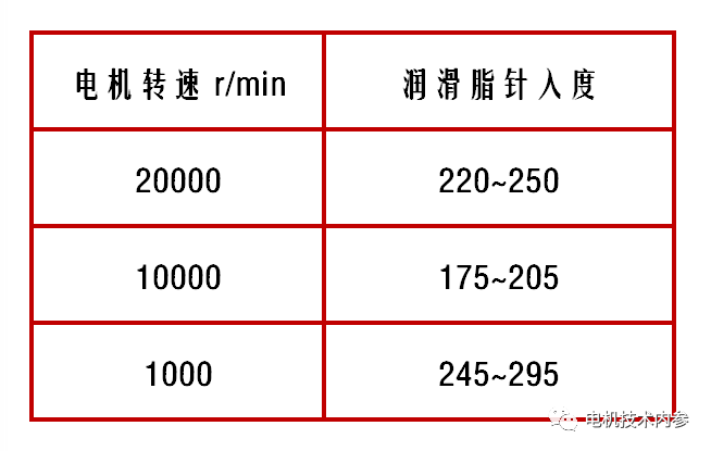 (2)速度。根據電機轉速選擇潤滑脂,并參考下表中的數據: